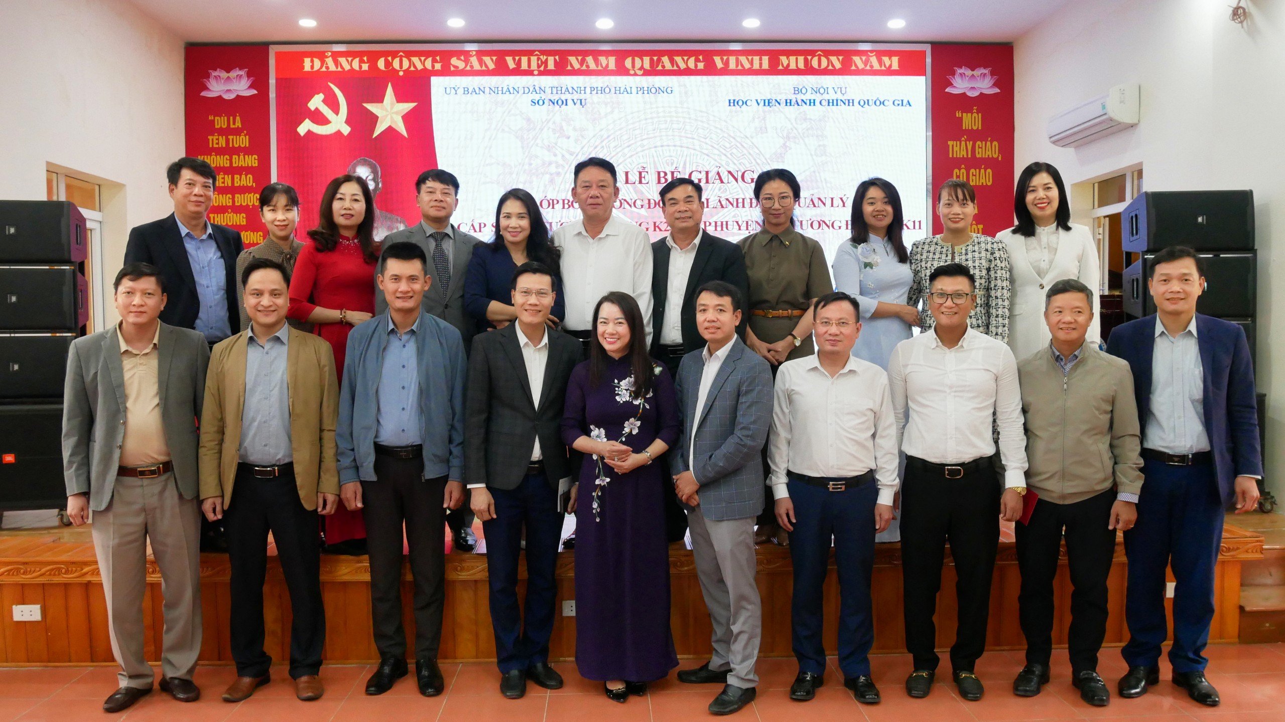 Dự Lễ bế giảng có bà Nguyễn Thị Thu, Ủy viên thành ủy, Giám đốc Sở Nội vụ Hải Phòng; Tiến sĩ Tống Đăng Hưng, Phó Trưởng ban Ban Quản lý bồi dưỡng Học viện Hành chính Quốc gia; Thạc sỹ Nguyễn Văn Thiện, Giám đốc Trung tâm Giáo dục thường xuyên Hải Phòng; đại diện lãnh đạo các Sở, ngành và các đơn vị liên quan; cùng 112 học viên là cán bộ, công chức, lãnh đạo các Sở, ban, ngành, UBND quận, huyện.