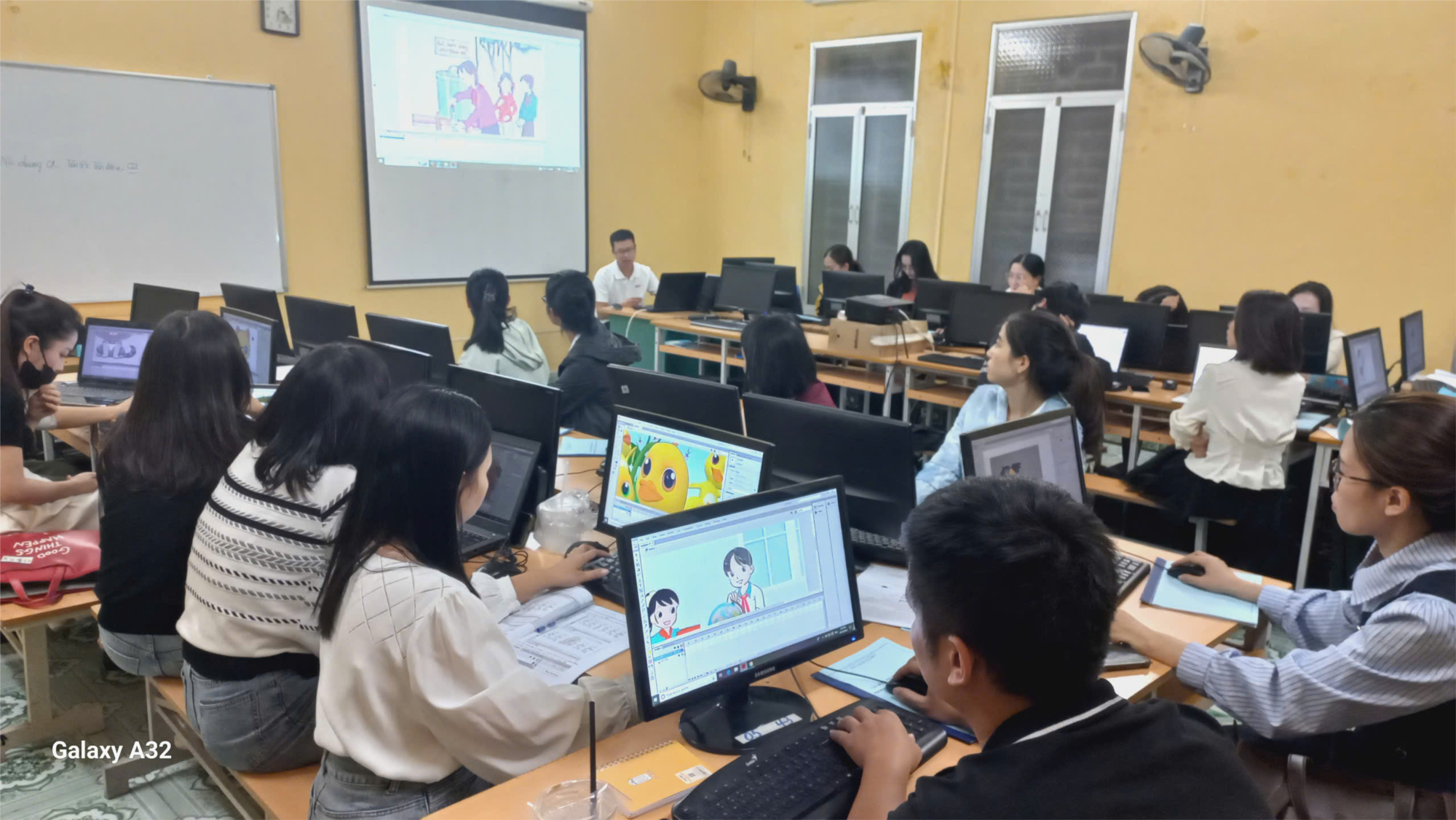 Một số hình ảnh tại các lớp bồi dưỡng ứng dụng phần mềm Adobe Flash ProFessional CS6 tạo phim hoạt hình:
