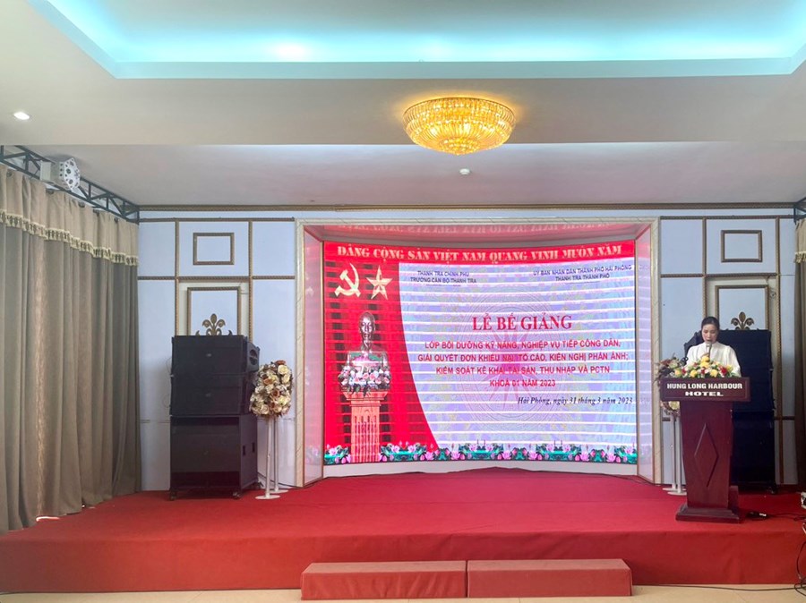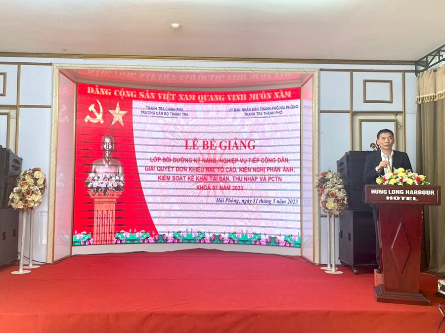 Sáng 31/3/2023, tại Trung tâm Giáo dục thường xuyên Hải Phòng, Trường Cán bộ Thanh tra, Thanh tra Chính phủ phối hợp với Thanh tra thành phố Hải Phòng đã tổ chức Lễ bế giảng lớp Bồi dưỡng kỹ năng, nghiệp vụ tiếp công dân, xử lý đơn thư, giải quyết khiếu nại, tố cáo và kiểm soát kê khai tài sản, thu nhập và phòng chống tham nhũng khoá 1,2 năm 2023.