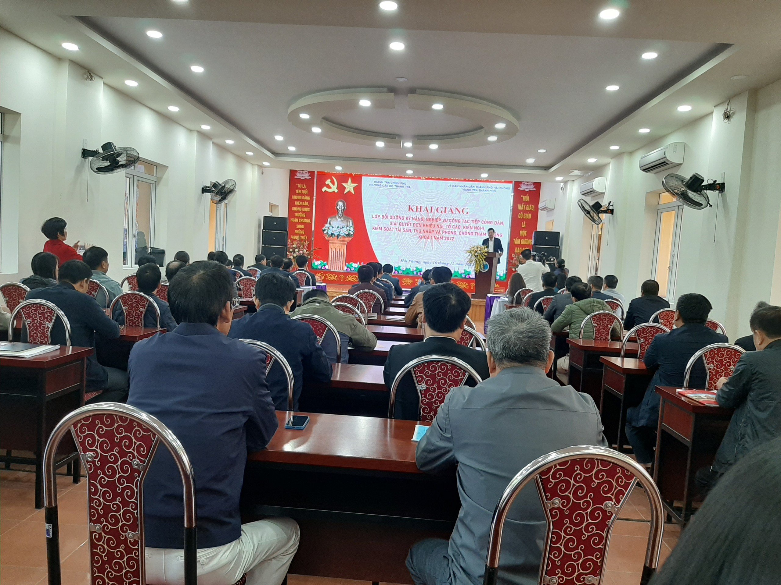 Thực hiện kế hoạch số 249/KH-UBND ngày 26/10/2022 của Uỷ ban nhân dân thành phố Hải Phòng về việc tổ chức các lớp tập huấn, bồi dưỡng kỹ năng, chuyên môn nghiệp vụ công tác tiếp công dân, giải quyết đơn khiếu nại, tố cáo, kiến nghị phản ánh; kiểm soát kê khai tài sản, thu nhập phòng, chống tham nhũng năm 2022. Nhằm xây dựng đội ngũ thanh tra vững vàng về chuyên môn nghiệp vụ, có đầy đủ kinh nghiệm, kỹ năng trong thực hiện nhiệm vụ, bám sát các quy định pháp luật của Thủ trưởng các cơ quan quản lý Nhà nước các cấp. Sáng 16.12.2022, Uỷ ban nhân dân thành phố giao Thanh tra thành phố phối hợp với Trường Cán bộ thanh tra và Trung tâm GDTX Hải Phòng tổ chức Lễ khai giảng các lớp Bồi dưỡng kỹ năng, chuyên môn nghiệp vụ công tác tiếp công dân, giải quyết đơn khiếu nại, tố cáo, kiến nghị phản ánh; kiểm soát kê khai tài sản, thu nhập phòng, chống tham nhũng.