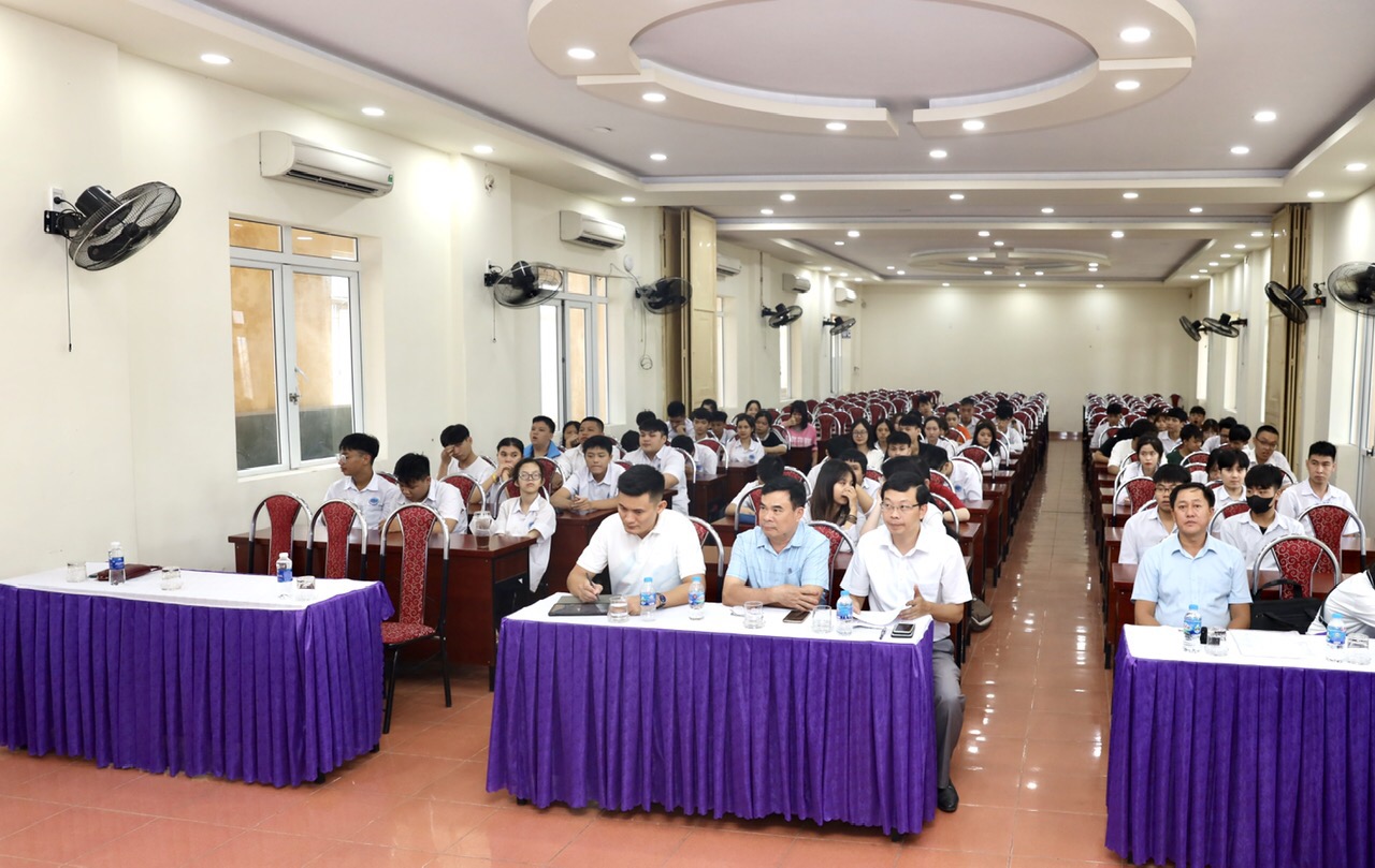 Hiệu trưởng trường Trung cấp Bách khoa Hải Phòng Nguyễn Việt Hùng phát biểu, phổ biến quy chế