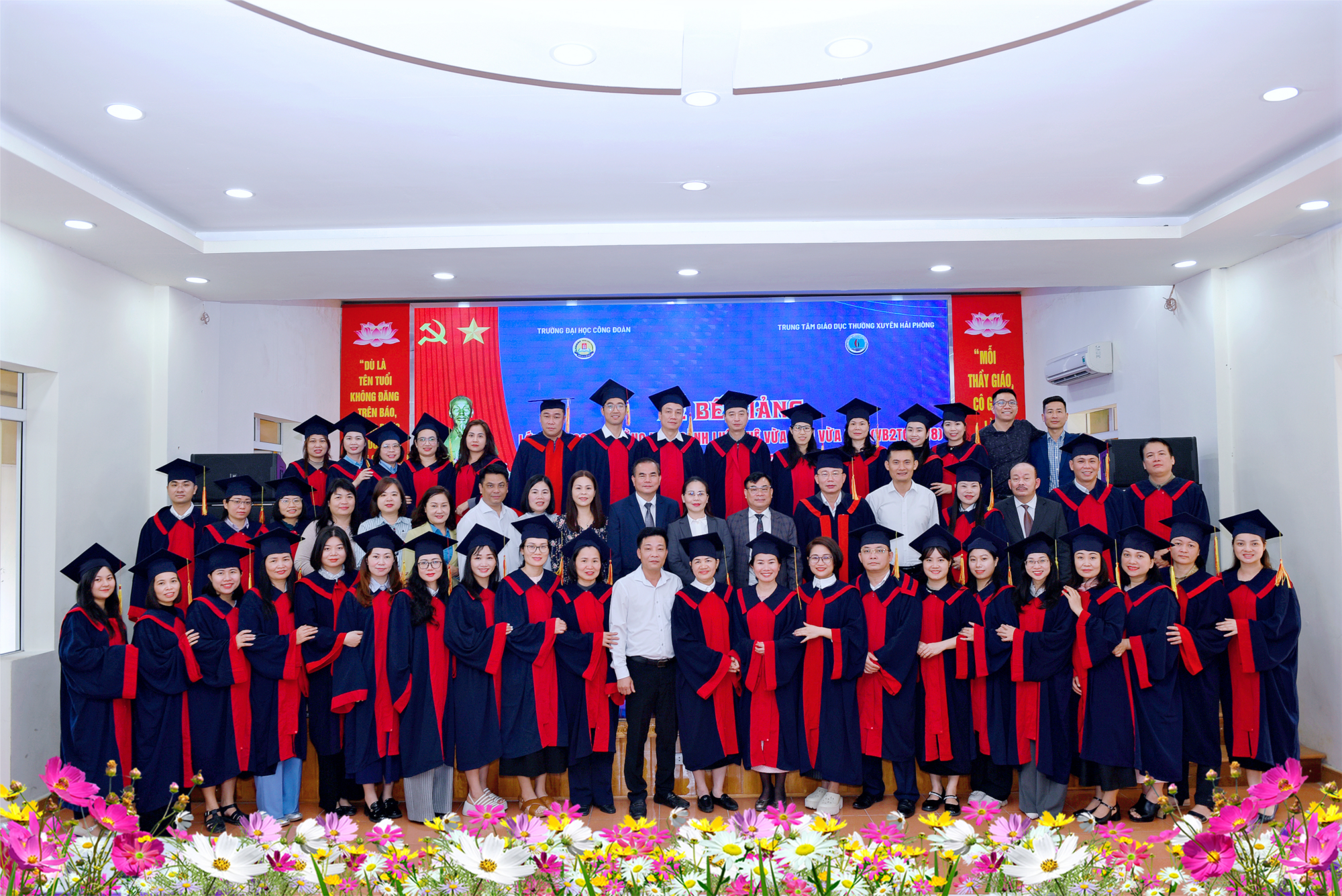 Sáng ngày 23/3/2025 Trường Đại học Công đoàn phối hợp với Liên đoàn Lao động thành phố Hải Phòng, Trung tâm Giáo dục thường xuyên Hải Phòng tổ chức Lễ bế giảng lớp Đại học văn bằng hai ngành Luật hệ vừa làm vừa học (VB2TC-LW8) khóa học 2022 - 2024, Đại học Công đoàn mở tại Trung tâm Giáo dục thường xuyên Hải Phòng và trao bằng cử nhân cho 55 học viên.