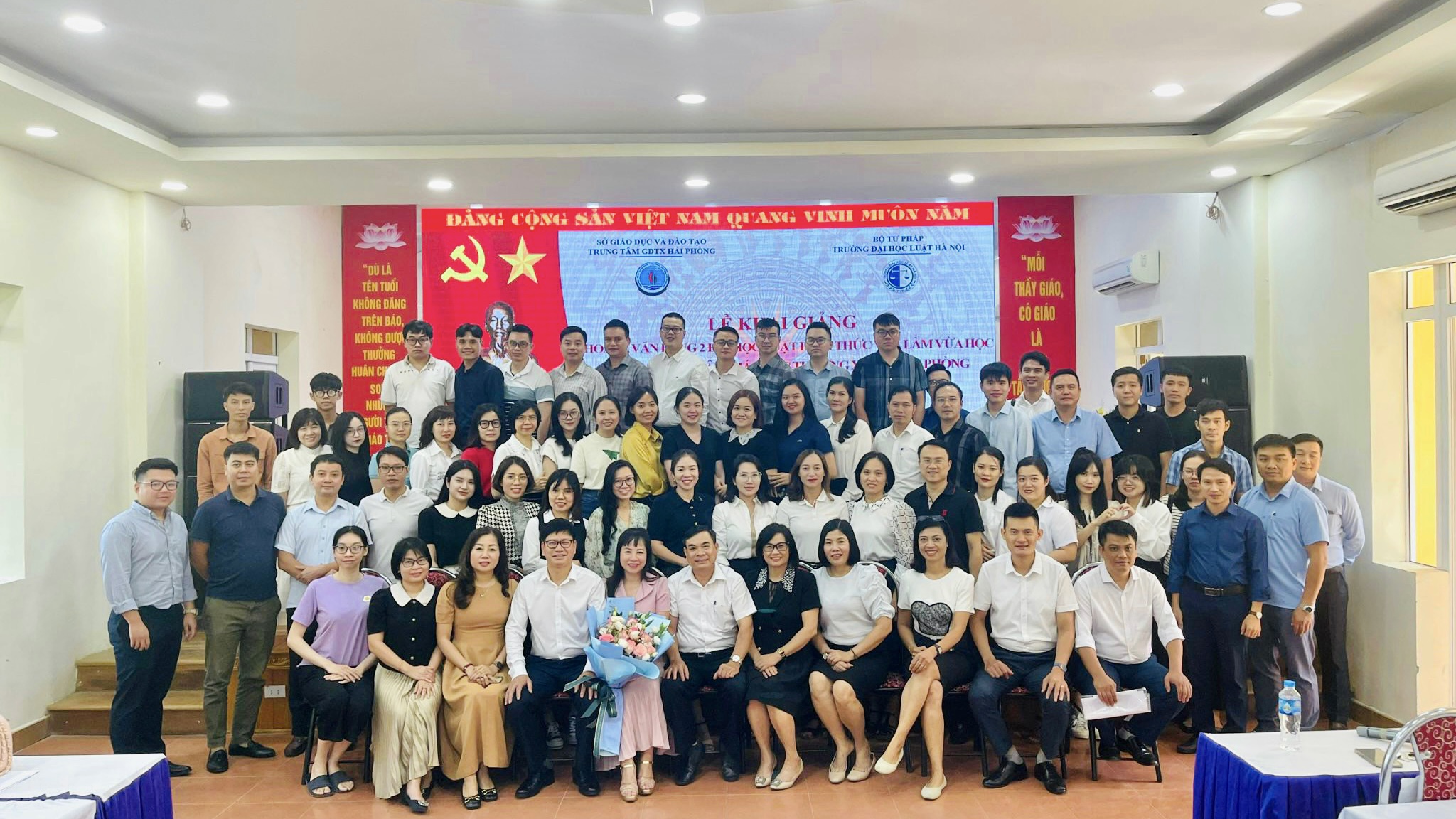 Được sự nhất trí của 02 đơn vị, sáng ngày 14/10/2023 Trung tâm GDTX Hải Phòng long trọng tổ chức lễ khai giảng lớp Đại học Luật văn bằng 2 khóa 16, hình thức vừa làm vừa học của Trường Đại học Luật Hà Nội tại Trung tâm GDTX Hải Phòng.