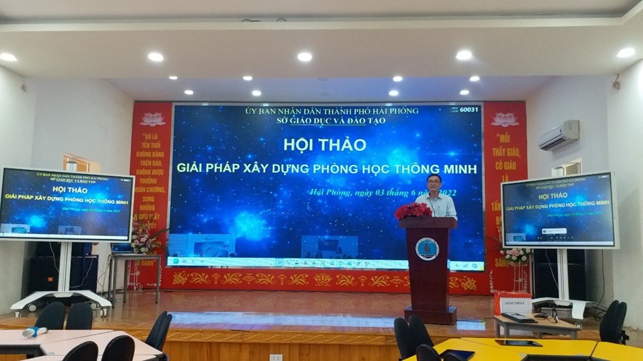 Chiều 3-6, tại Trung tâm giáo dục thường xuyên Hải Phòng, Sở Giáo dục và Đào tạo (GD-ĐT) thành phố tổ chức hội thảo Giải pháp xây dựng phòng học thông minh. Đây là một trong những hoạt động ngành giáo dục thành phố tích cực triển khai thực hiện Nghị quyết 03-NQ/TU ngày 26-10-2021 của Ban Thường vụ Thành uỷ về chuyển đổi số thành phố Hải Phòng đến năm 2025, định hướng năm 2030. Nhà giáo Bùi Văn Kiệm, Giám đốc Sở GD&ĐT đến dự, phát biểu khai mạc Hội thảo.