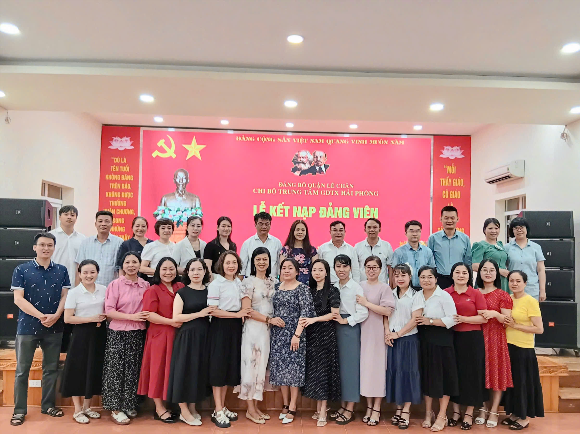 Thực hiện tốt Nghị quyết Đại hội Đảng các cấp về công tác phát triển Đảng viên, chiều ngày 29 tháng 6 năm 2025, Chi bộ Trung tâm Giáo dục thường xuyên Hải Phòng đã long trọng tổ chức Lễ kết nạp Đảng viên mới cho quần chúng ưu tú Trần Thị Len.