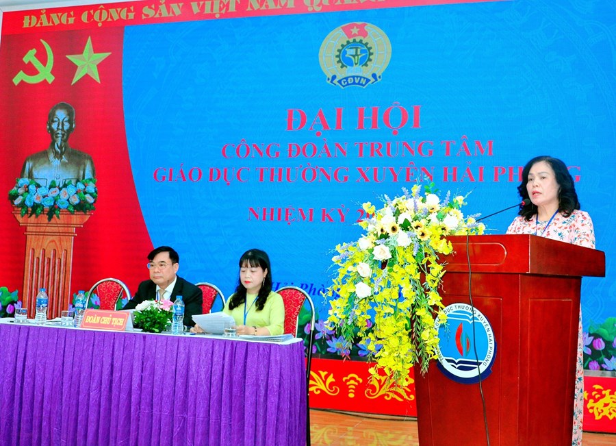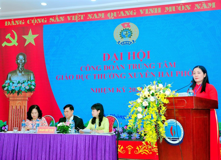 Đồng thời đại hội cũng được nghe báo cáo về phương hướng hoạt động của BCH Công đoàn trung tâm nhiệm kỳ 2023-2028. Nhiệm kỳ 2023-2028, Công đoàn Trung tâm Giáo dục thường xuyên Hải Phòng tiếp tục đổi mới công tác tuyên truyền, giáo dục, xây dựng đội ngũ nhà giáo, người lao động trong đơn vị vững mạnh toàn diện, đáp ứng yêu cầu, nhiệm vụ trong tình hình mới. Duy trì, đổi mới nội dung, phương thức hoạt động công đoàn; quan tâm đào tạo, bồi dưỡng nâng cao trình độ đội ngũ cán bộ, giáo viên và cán bộ công đoàn. Phát huy dân chủ cơ sở, làm tốt hơn nữa công tác chăm lo, bảo vệ quyền và lợi ích hợp pháp, chính đáng cho nhà giáo, người lao động; tăng cường các hoạt động xã hội; tổ chức sâu rộng các phong trào thi đua yêu nước…