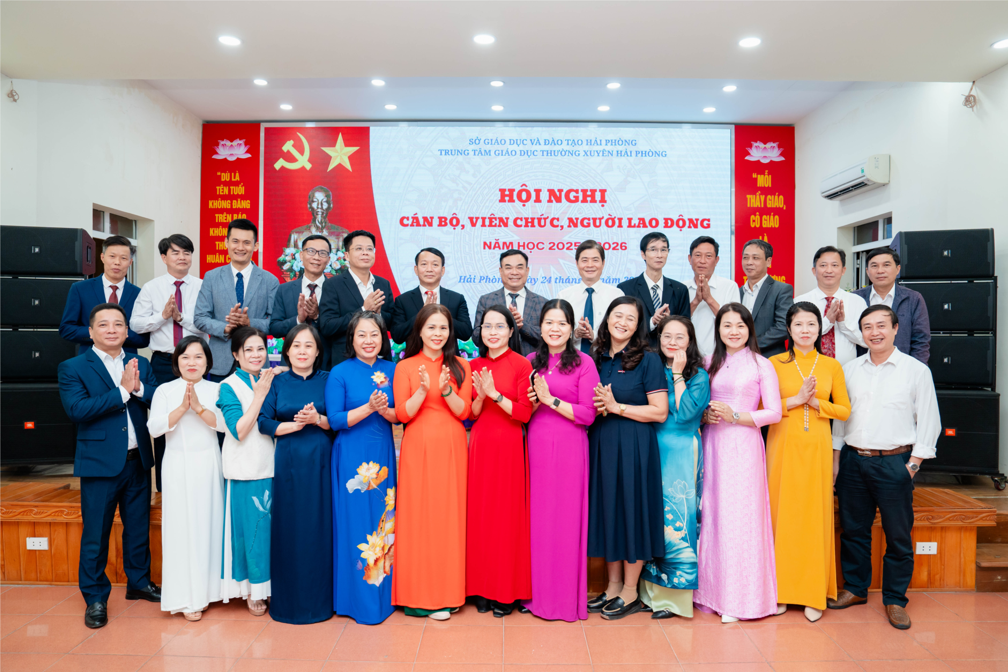 Thực hiện Công văn số 7074/HD-SGDĐT ngày 25/9/2025 của Sở Giáo dục và Đào tạo Hải Phòng hướng dẫn về tổ chức Hội nghị cán bộ, viên chức, người lao động năm học 2025 – 2026; Công văn số 7466 ngày 08/10/2025 của Sở Giáo dục và Đào tạo Hải Phòng v/v trả lời về việc tổ chức Tổ chức Hội nghị cán bộ, viên chức, người lao động năm học 2025 – 2026, hôm nay Trung Tâm GDTX Hải Phòng long trọng tổ chức Hội nghị cán bộ, viên chức, người lao động năm học 2025 - 2026, nhằm tổng kết Nghị quyết hội nghị đề ra trong năm học 2024 - 2025, xây dựng hệ thống chỉ tiêu và bàn bạc, thống nhất thông qua các giải pháp, biện pháp thực hiện trong năm học 2025 - 2026.