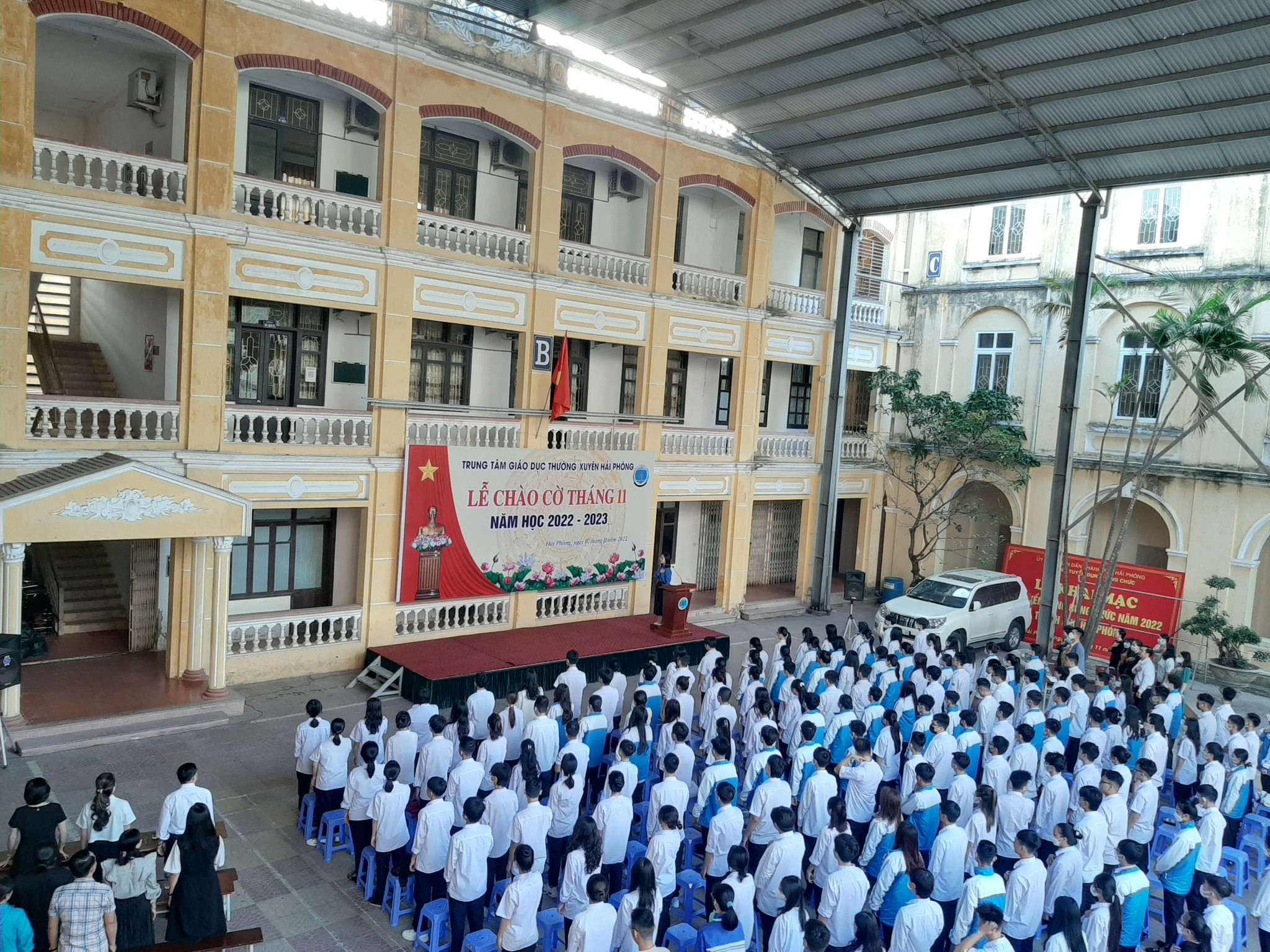 Ngày 07/11/2022, dưới ánh nắng mùa thu rực rỡ, buổi lễ sinh hoạt dưới cờ chào tháng 11 đã được tổ chức rất trang nghiêm và cũng thật rộn ràng, sôi động trên sân Trung tâm Giáo dục thường xuyên Hải Phòng nhằm tổng kết các hoạt động của tháng 10 và thông báo kế hoạch tháng 11 của Trung tâm. Lễ chào cờ đầu tháng là hoạt động đầu tiên hướng tới một chuỗi các hoạt động chào mừng trong tháng 11 – tháng tri ân dành các cán bộ ngành giáo dục, đặc biệt là các thầy cô giáo.