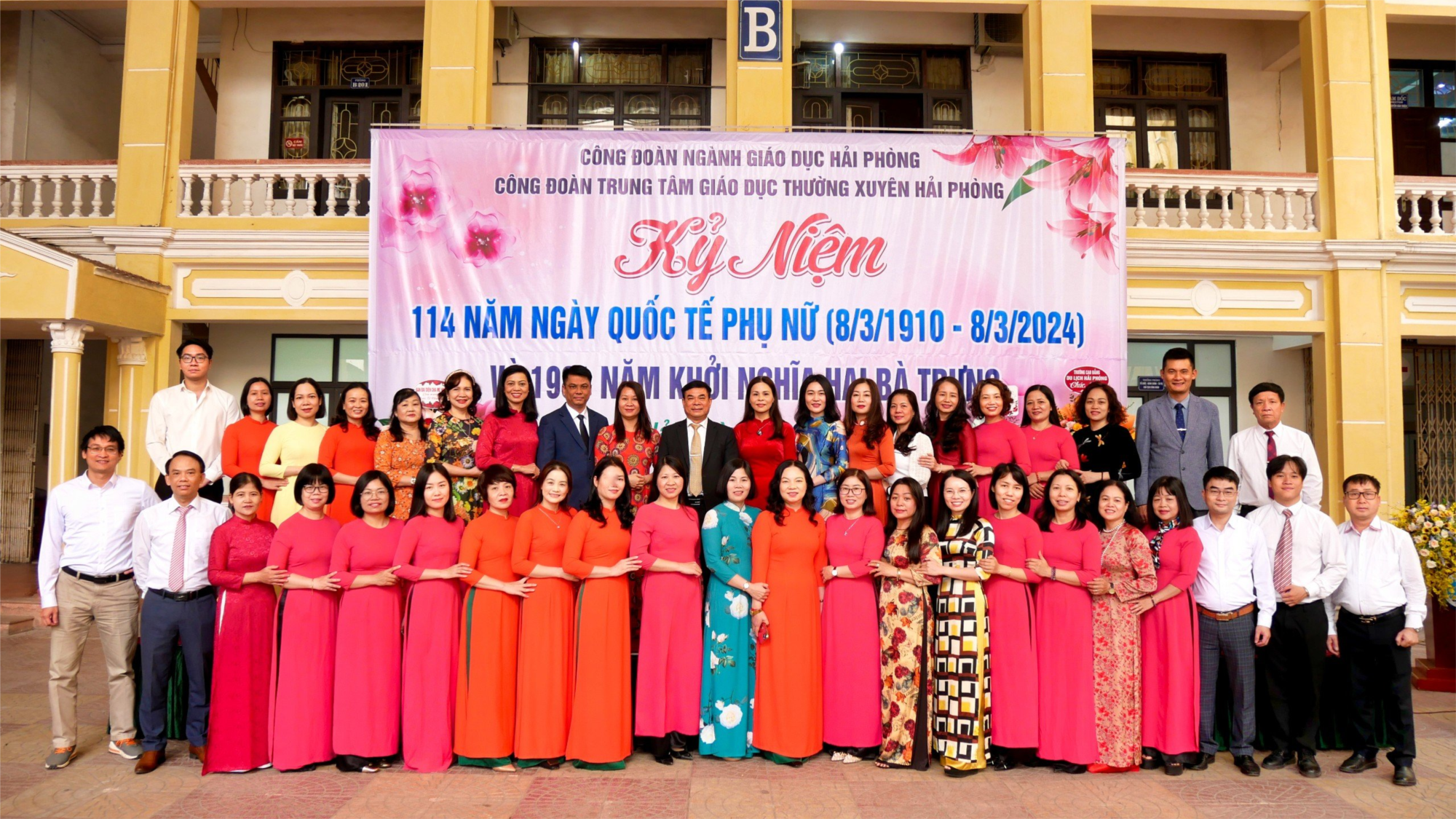 Thực hiện hướng dẫn số 12/CĐN, ngày 19/2/2024 của Công đoàn ngành giáo dục Hải Phòng về việc tổ chức kỷ niệm 114 năm ngày Quốc tế phụ nữ (08/3/1910 – 08/3/2024). Nhằm phát huy những phẩm chất tốt đẹp của người phụ nữ Việt Nam trong thời kỳ công nghiệp hóa, hiện đại hóa đất nước; Chúc các nữ cán bộ, giáo viên, công nhân viên, các em học sinh nữ hăng hái học tập, thi đua dạy tốt, học tốt, hoàn thành xuất sắc nhiệm vụ được giao; Phát huy tinh thần yêu nước, truyền thống cách mạng trong nữ CNVCLĐ, đồng thời củng cố và nâng cao chất lượng hoạt động của Ban Nữ công, góp phần nâng cao vai trò của lao động nữ, bảo vệ quyền và lợi ích hợp pháp của họ; Tạo ra một môi trường học đường văn minh hơn cho tất cả mọi người. Thực hiện kế hoạch hoạt động năm học 2023 – 2024. Sáng 07 tháng 3 năm 2024, Ban chấp hành Công đoàn phối hợp cùng Ban chấp hành Đoàn thanh niên Trung tâm GDTX Hải Phòng tổ chức chương trình "Kỷ niệm 114 năm ngày quốc tế phụ nữ (08/3/1910 - 08/3/2024) và 1984 năm khởi nghĩa Hai Bà Trưng.