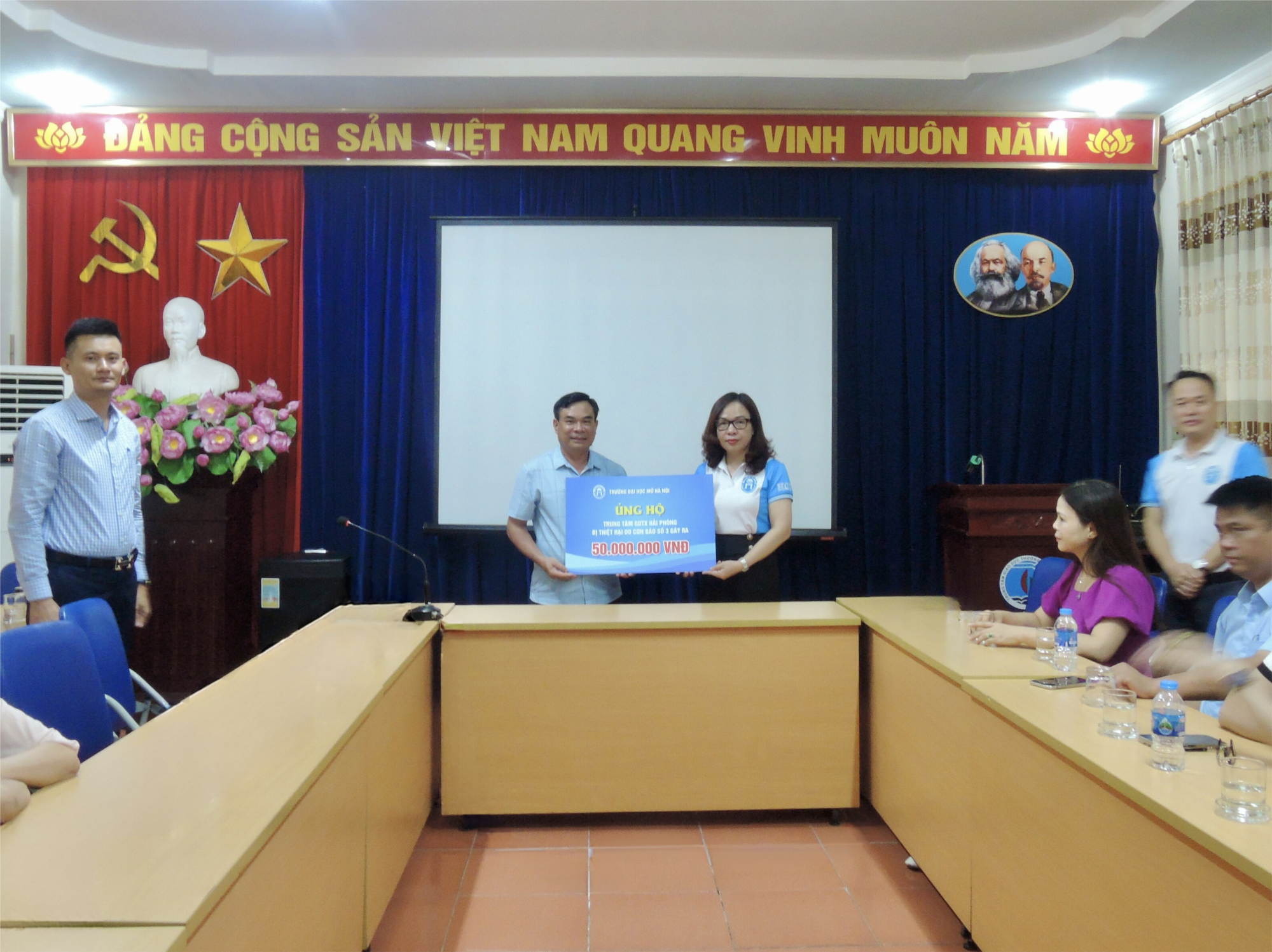 Tại buổi gặp mặt đoàn đã trao phần quà trị giá 50 triệu đồng để ủng hộ trung tâm khắc phục hậu quả sau bão. Cũng trong buổi gặp mặt, Hiệu trưởng Nguyễn Thị Nhung cũng thông tin thêm về việc thống kê thiệt hại và lên phương án hỗ trợ đối với sinh viên của nhà trường đang học tập tại trung tâm GDTX Hải Phòng bị ảnh hưởng nặng nề của bão số 3.