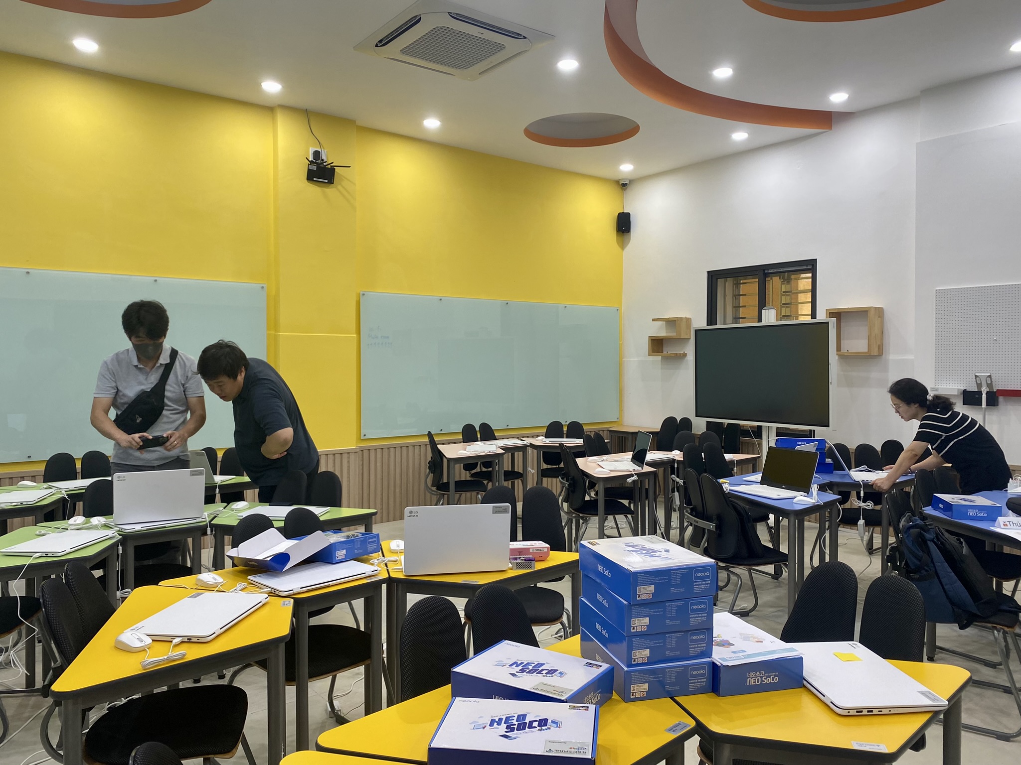 Trong các ngày từ ngày 16/5 đến ngày 19/5/2023, đại diện tập đoàn DB.,Inc và Mediazen, Hàn Quốc – nhà cung cấp các thiết bị viện trợ đã tiến hành kiểm tra toàn bộ các thiết bị đã được trang bị, đánh giá tình trạng và có phương án bảo dưỡng định kì, bảo hành các vấn đề phát sinh.