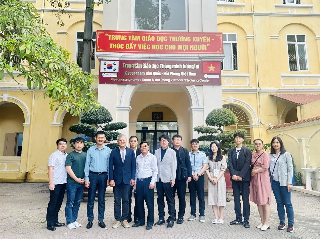 Chiều ngày 10/4/2024, Đoàn công tác gồm đại diện Vụ Giáo dục thường xuyên, Bộ Giáo dục & Đào tạo, Sở giáo dục Gyeongsangnam-do đã đến khảo sát việc triển khai hoạt động của “Trung tâm Giáo dục thông minh tương lai Gyeongsangnam” tại Trung tâm GDTX Hải Phòng. Đoàn đã tham quan lớp học và họp thảo luận về phương án cải tiến các tiết học; thảo luận về các hoạt động kết nối giáo viên Việt Nam tham gia đào tạo và giáo viên Hàn Quốc; Tổ chức khảo sát bảng hỏi liên quan đến chính sách nghiên cứu.