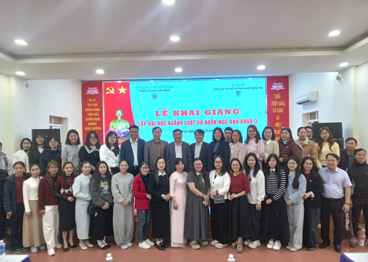 Chiều ngày 17/01/2026, Trung tâm Giáo dục thường xuyên Hải Phòng phối hợp cùng Viện Đào tạo mở và Công nghệ thông tin – Đại học Huế long trọng tổ chức Lễ Khai giảng các lớp đại học ngành Luật và Ngôn ngữ Anh khóa 3.