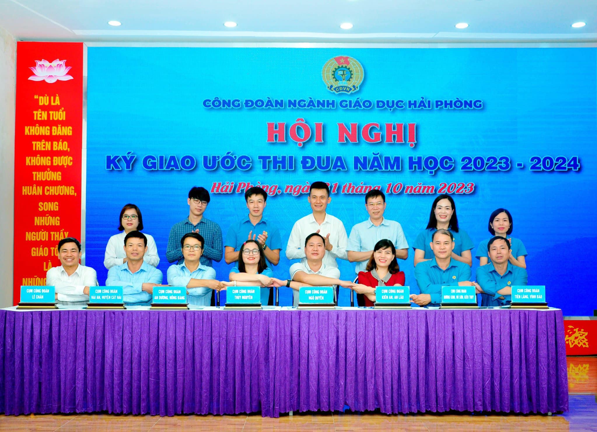 Thực hiện chủ đề năm học là “Đoàn kết, kỷ cương, đổi mới, sáng tạo, hoàn thành tốt các nhiệm vụ và mục tiêu đổi mới, nâng cao chất lượng giáo dục và đào tạo”, phát huy những thành tích đã đạt được, Công đoàn ngành Giáo dục Hải Phòng phát động thi đua trong cán bộ, đoàn viên, nhà giáo, người lao động ngành Giáo dục và Đào tạo thành phố.