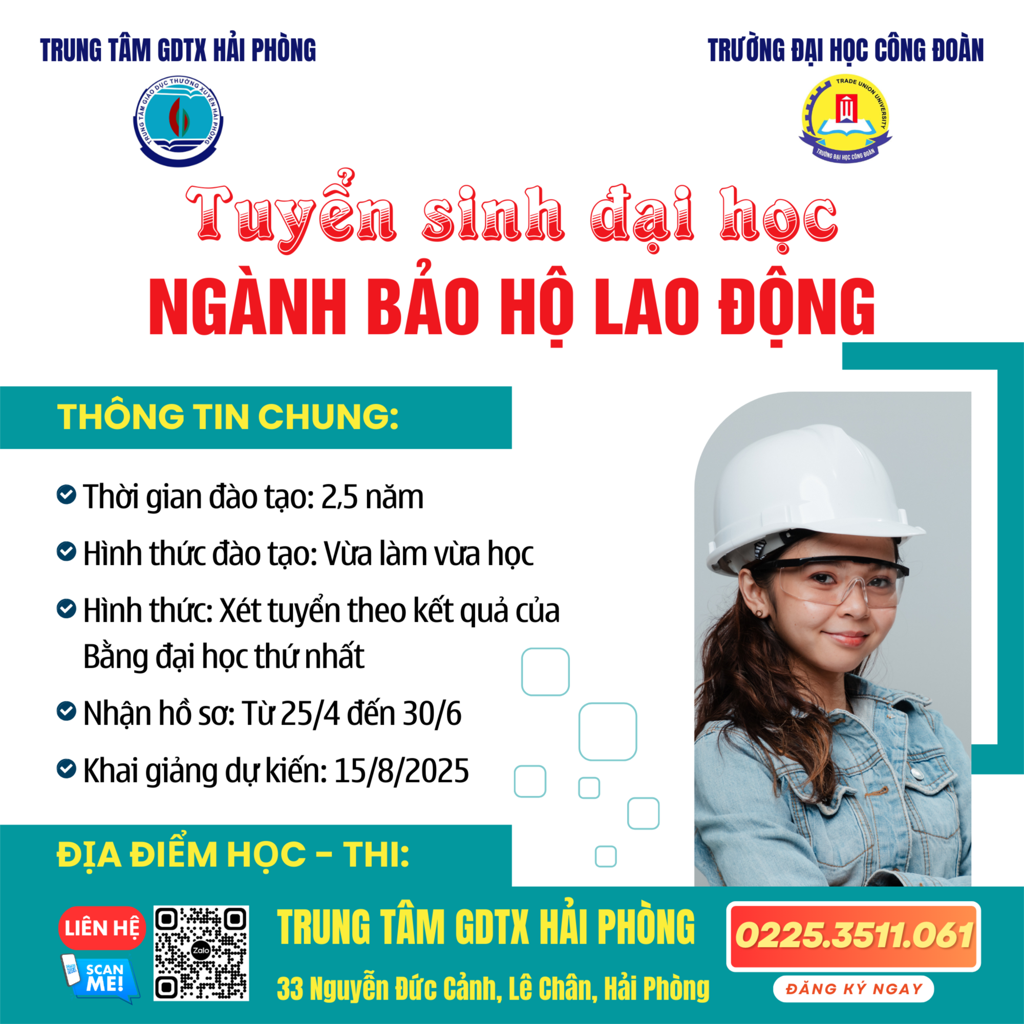 Trung tâm GDTX Hải Phòng phối hợp với Trường Đại học Công đoàn tuyển sinh đào tạo đại học ngành Bảo hộ lao động năm 2025