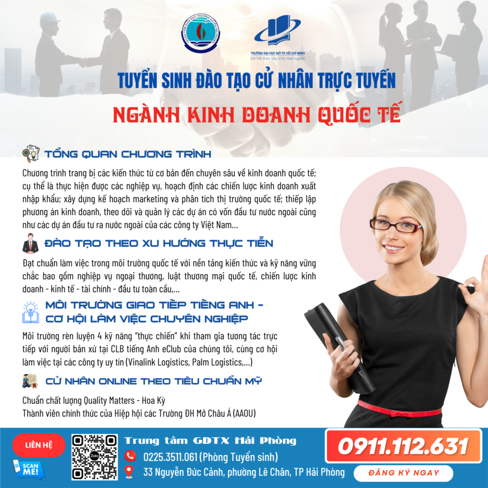 Bằng cử nhân Kinh doanh quốc tế hình thức đào tạo từ xa theo phương thức trực tuyến nằm trong hệ thống văn bằng quốc gia, được học lên cao học.